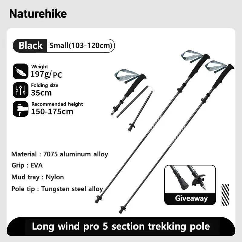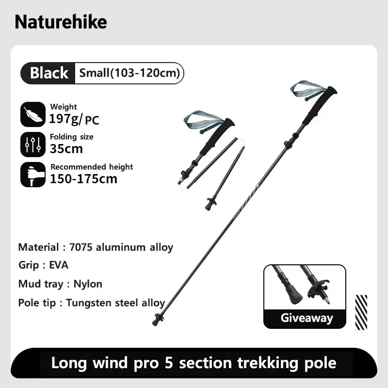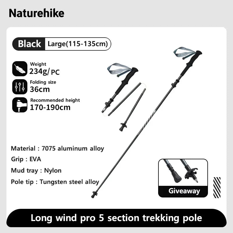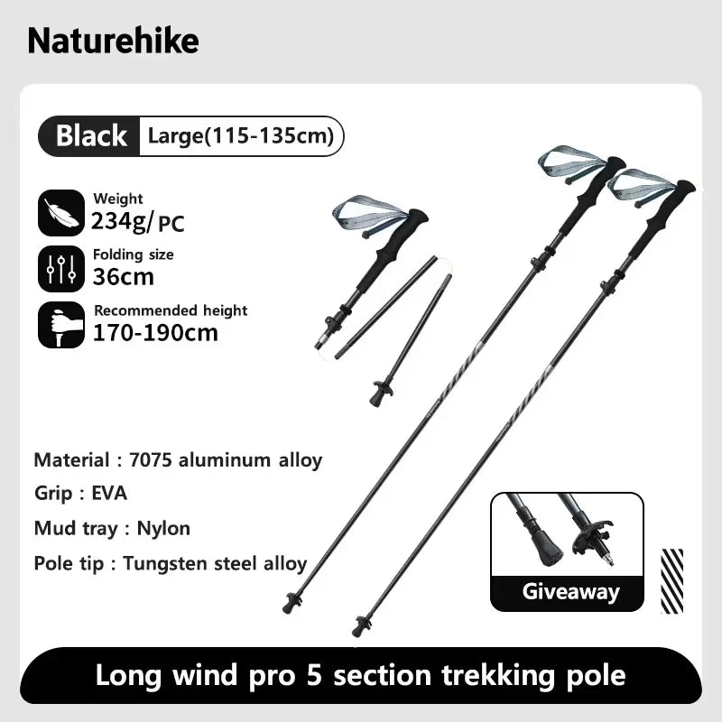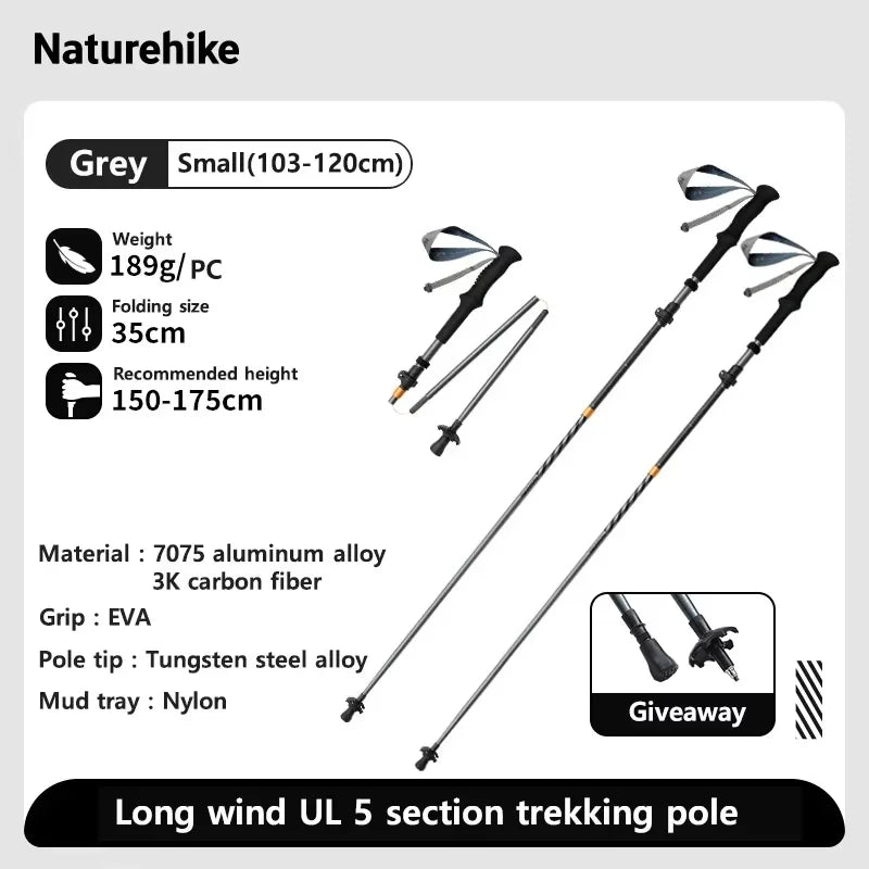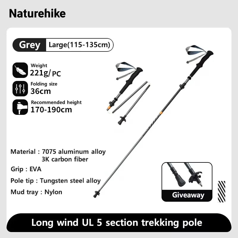 Take your trekking experience to the next level with the Naturehike Long Wind trekking poles. These five-section, foldable walking sticks are crafted with carbon fiber and 7075 aluminum alloy, offering an unbeatable combination of strength and lightness. Perfect for hiking, climbing, and outdoor adventures.