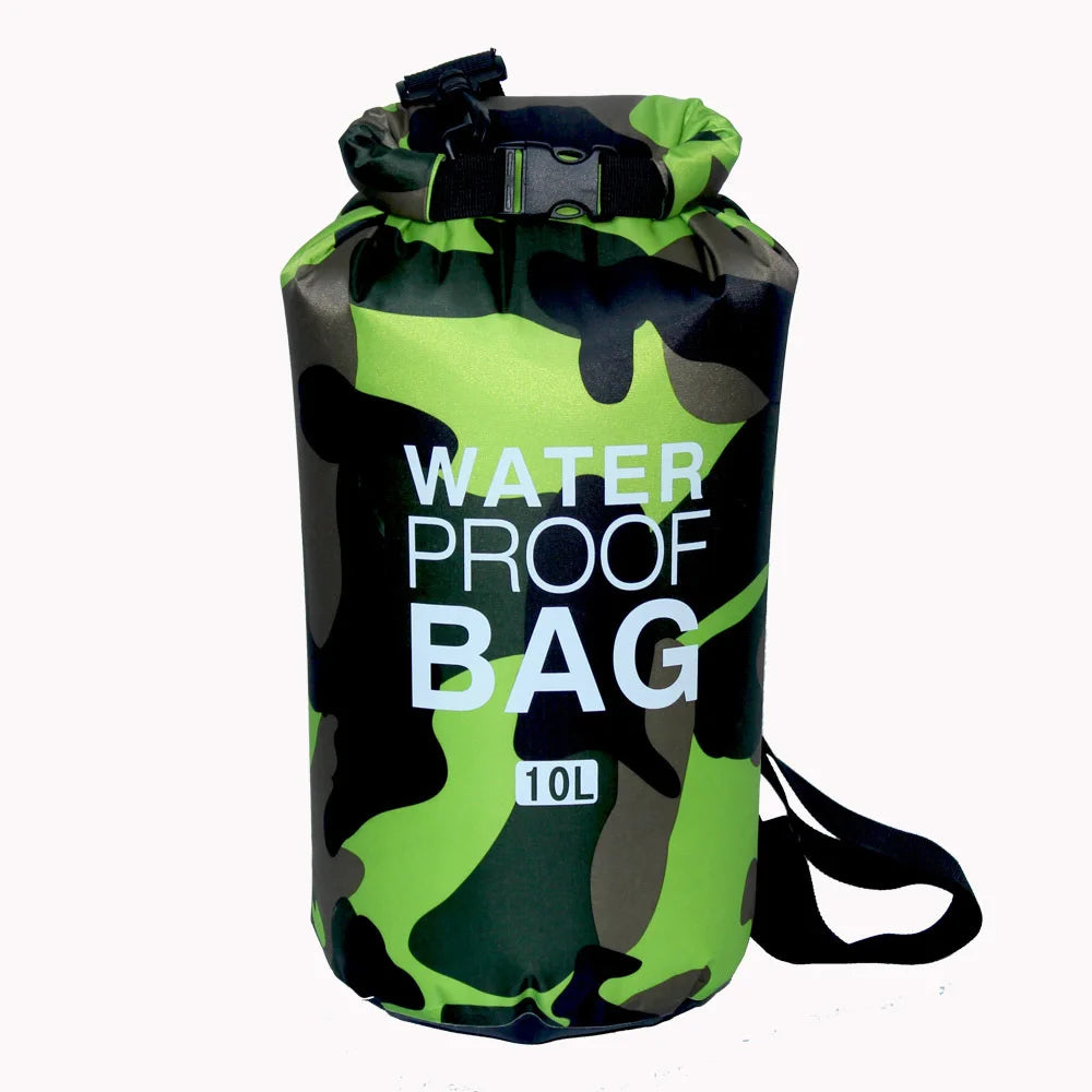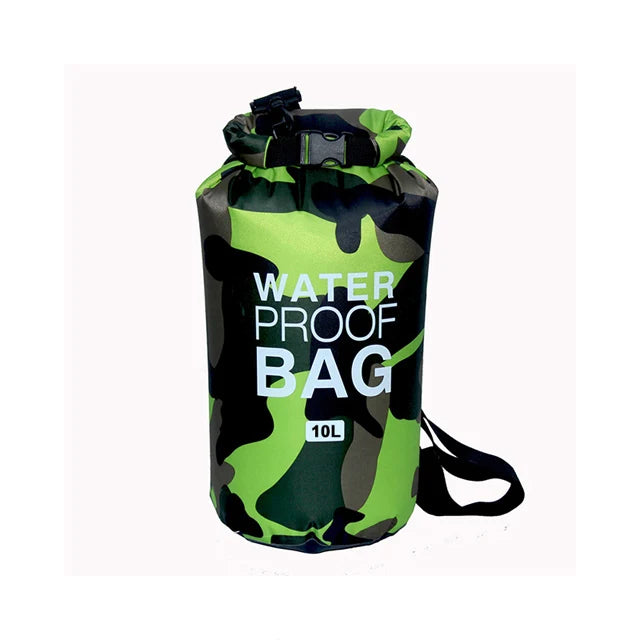 This waterproof dry sack is designed to protect your gear during water-based and outdoor activities such as swimming, boating, kayaking, rafting, fishing, camping, and mountaineering. Made from durable polyester with a PVC waterproof layer, it helps keep contents dry, clean, and secure even in wet conditions. The camouflage design adds a practical outdoor look while remaining lightweight and easy to pack.