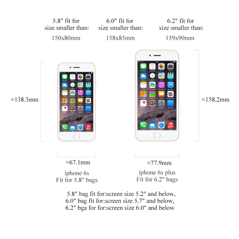 Size S: Compatible with phones like iPhone 7/6S/6, Samsung Galaxy S6, and Huawei P7/P8.
