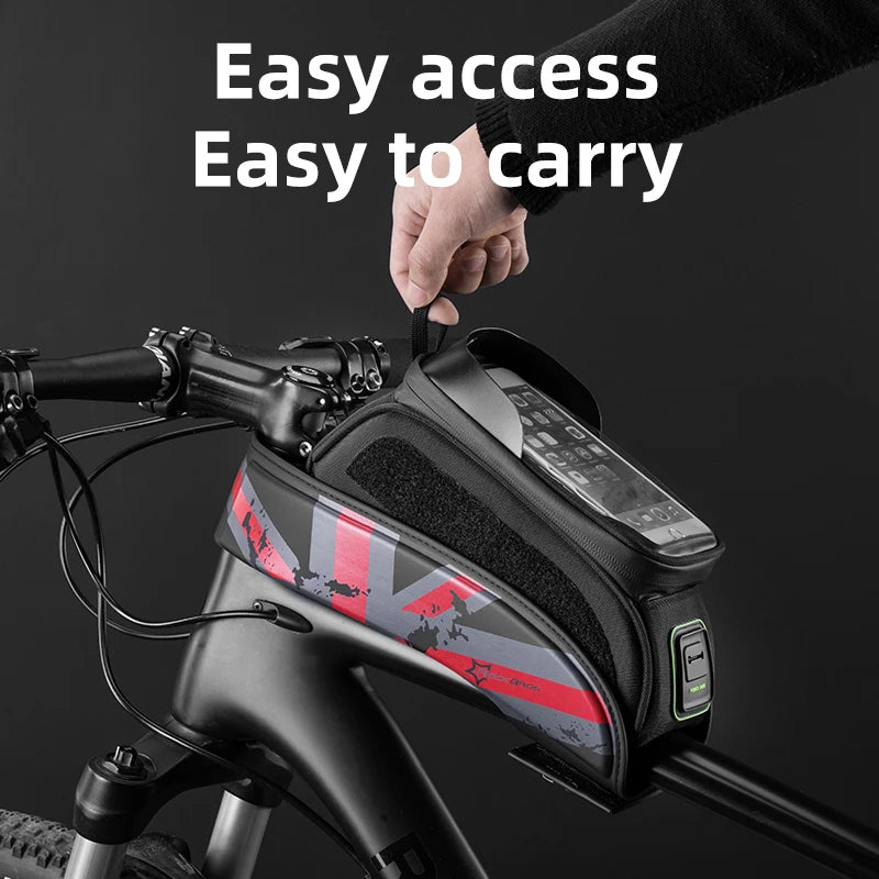 The ROCKBROS Bicycle Front Tube Frame Bag combines functionality with a sleek design. It offers rainproof protection, a sensitive touchscreen interface, and versatile storage. Perfect for MTB and road bikes, this bag keeps your essentials accessible while safeguarding your phone during rides.