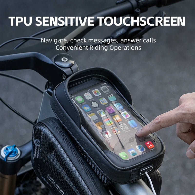 The ROCKBROS EVA hard shell top tube bag is designed for cyclists who want secure storage and easy phone access on the go. Built with a shockproof EVA shell and durable nylon, this bag protects your essentials while keeping them within reach.